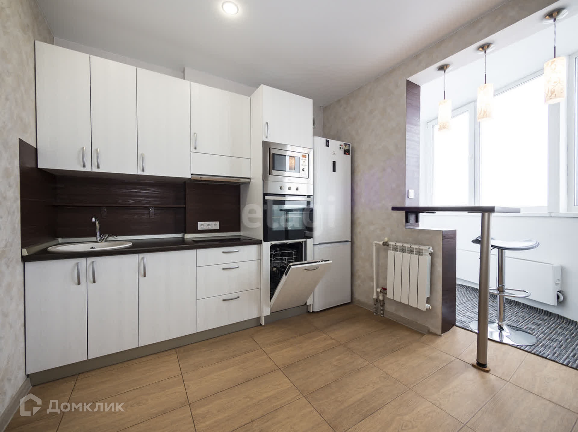 В СТОИМОСТЬ КВАРТИРЫ ВХОДИТ: кухонный гарнитур, варочная панель, духовой шкаф, посудомоечная машина, микроволновая печь, вытяжка, холодильник, барная стойка, диван, стулья, светильники.