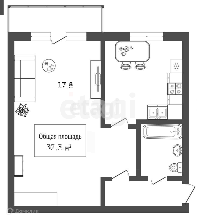 Общая площадь 32.3 м2