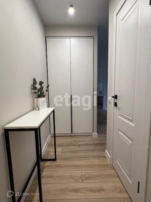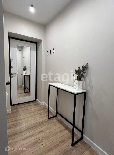 Прихожая: двустворчатый шкаф, консольный столик, крючки для одежды.