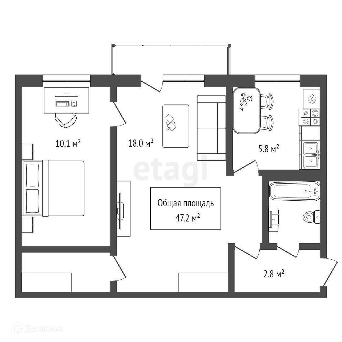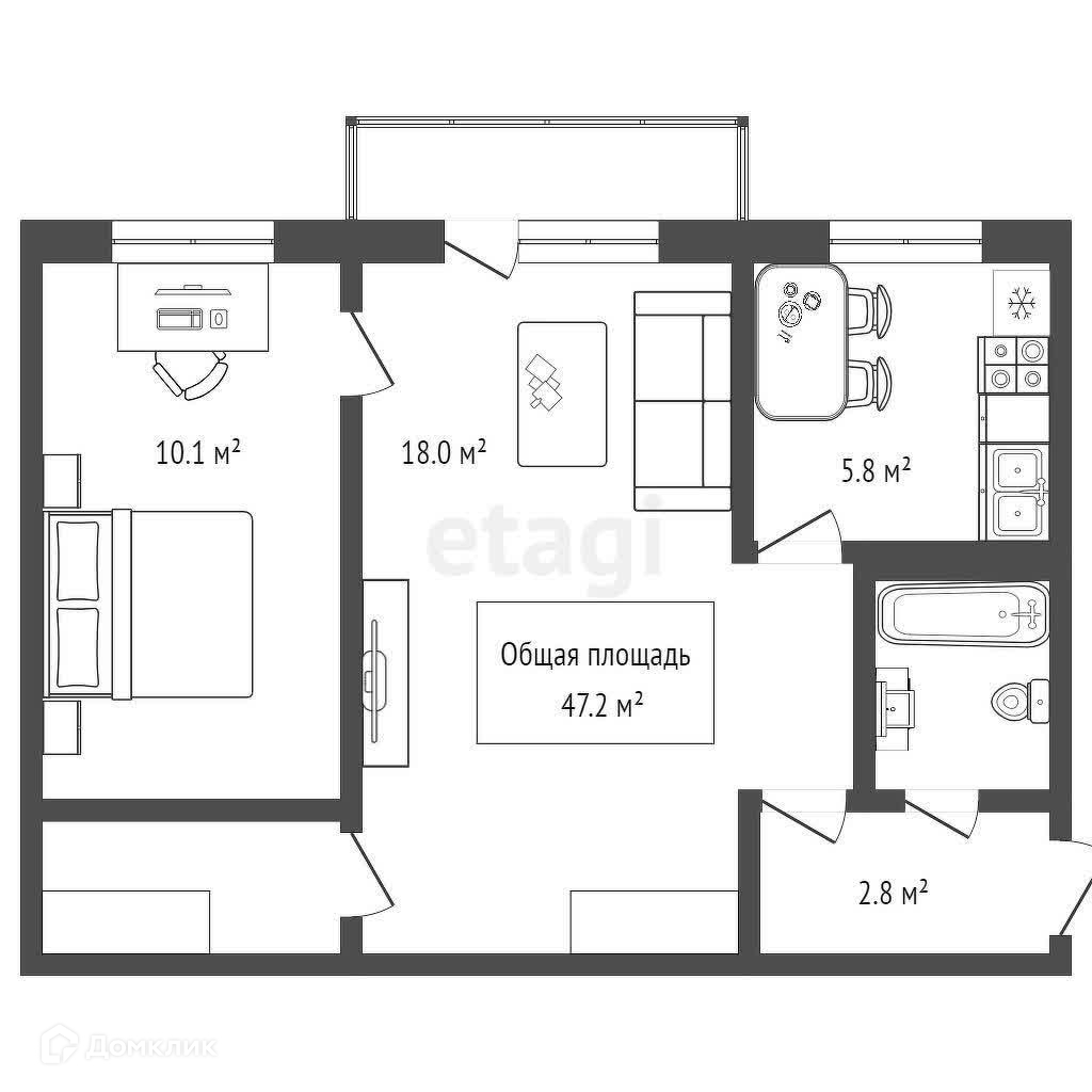 Гостиная: трехстворчатый шкаф, тумба под телевизор, диван; выведена розетка под кондиционер. Есть зона для расположения рабочего стола или детской кроватки.