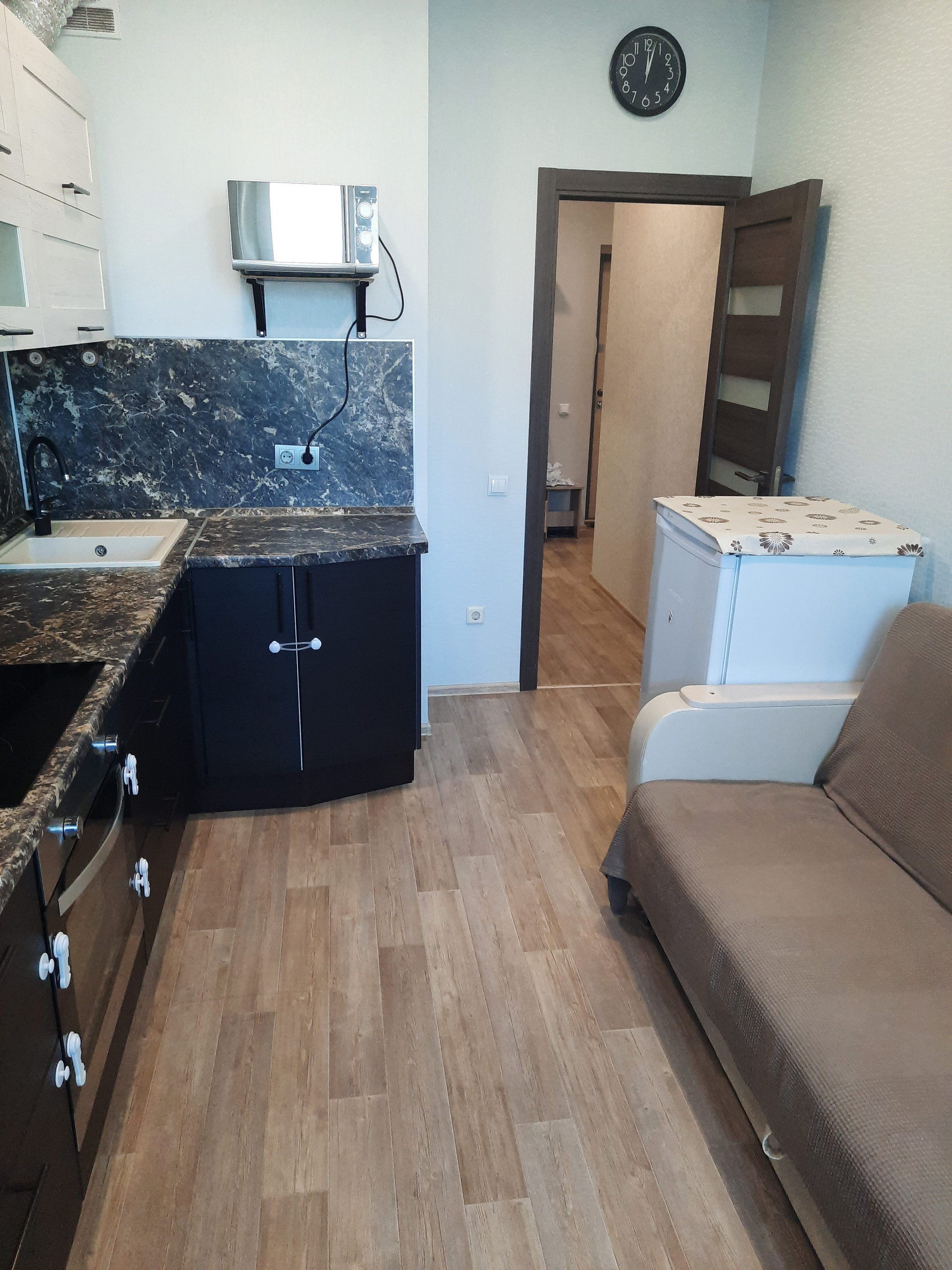 Квартира в хорошем состоянии, не требующем срочного ремонта; имеет ряд преимуществ: светлая и теплая, с просторной кухней, застекленной вместительной лоджией, частично меблирована (встроенный шкаф-купе с зеркальными дверями в коридоре, встроенный шкаф в комнате, кухонный гарнитур вместе с вытяжкой, духовым шкафом, варочной панелью).