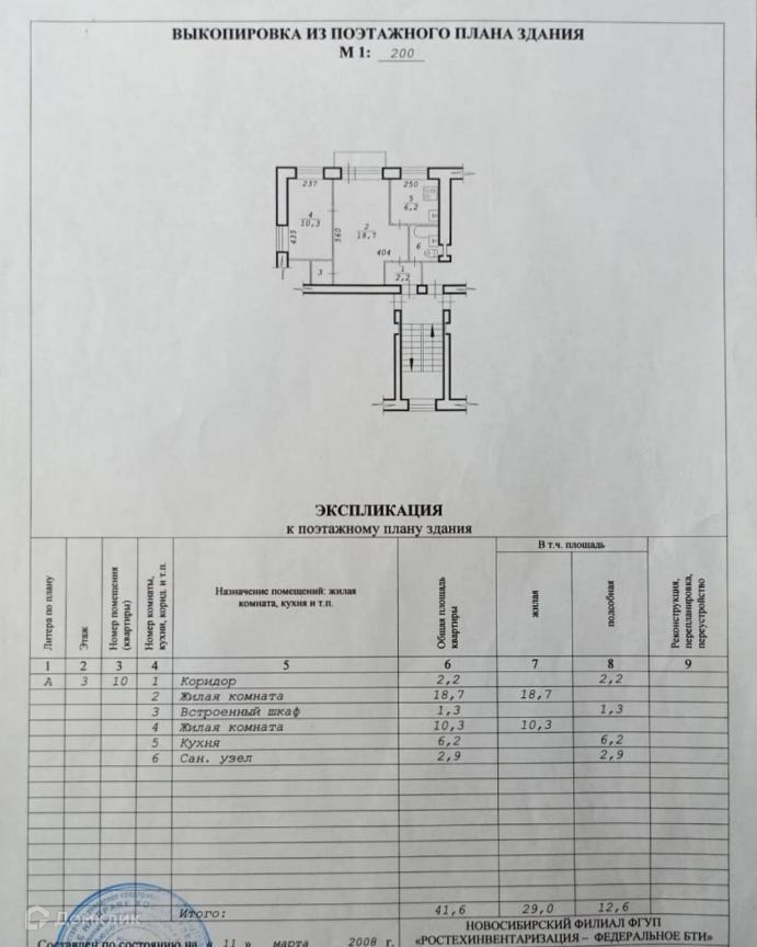 2-комнатная квартира, 41.6 м2, этаж 3 / 4, на продажу в Новосибирске, улица Героев Труда, 13