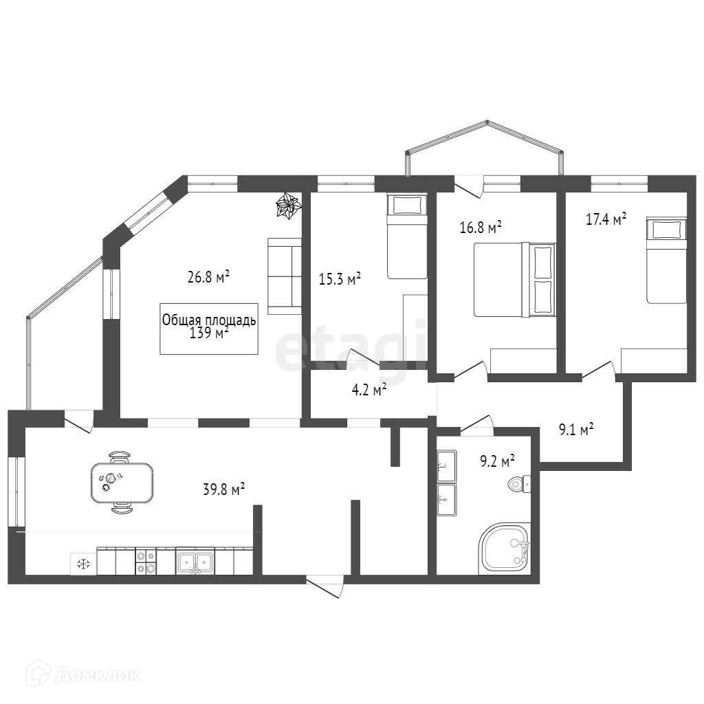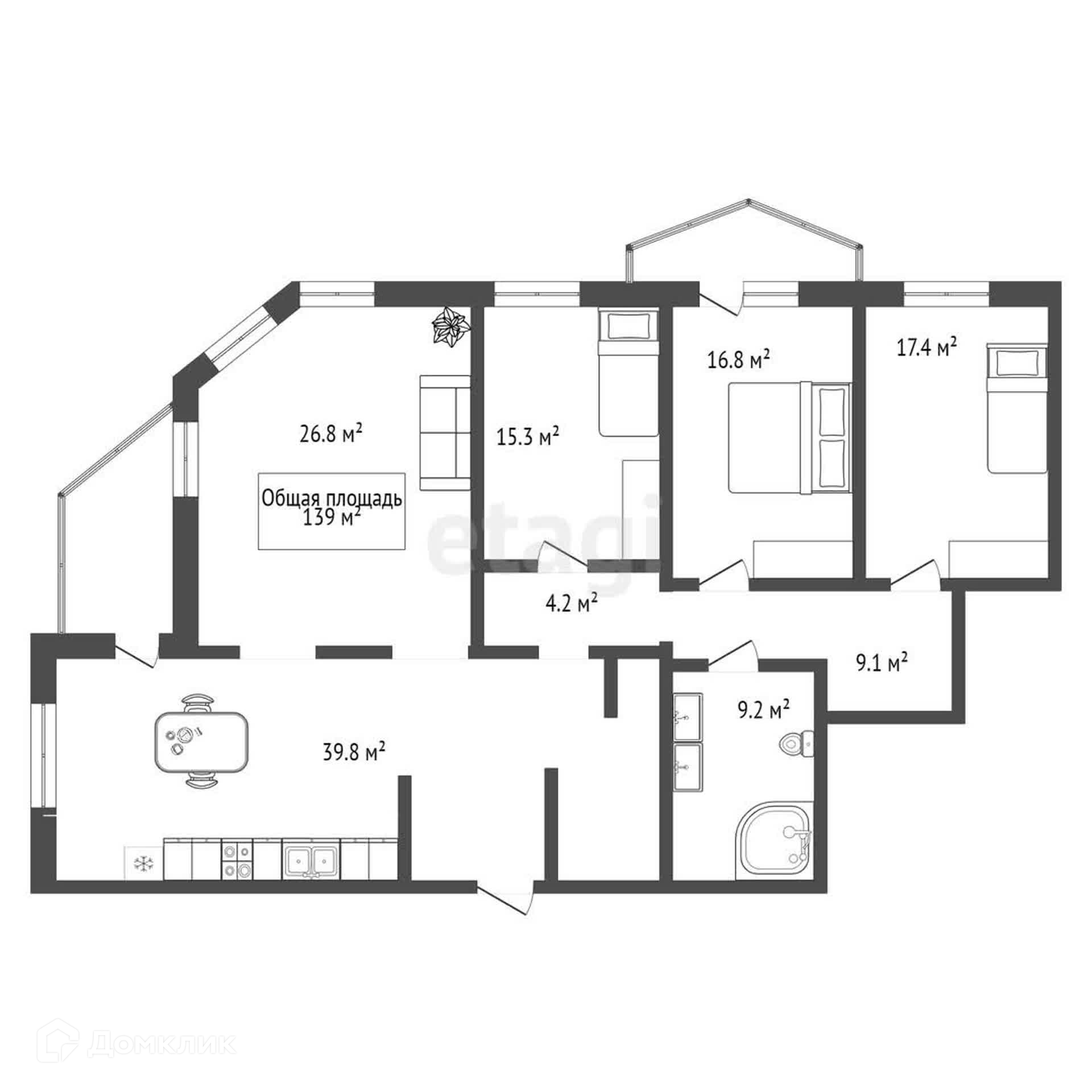 Общая площадь 139 м2