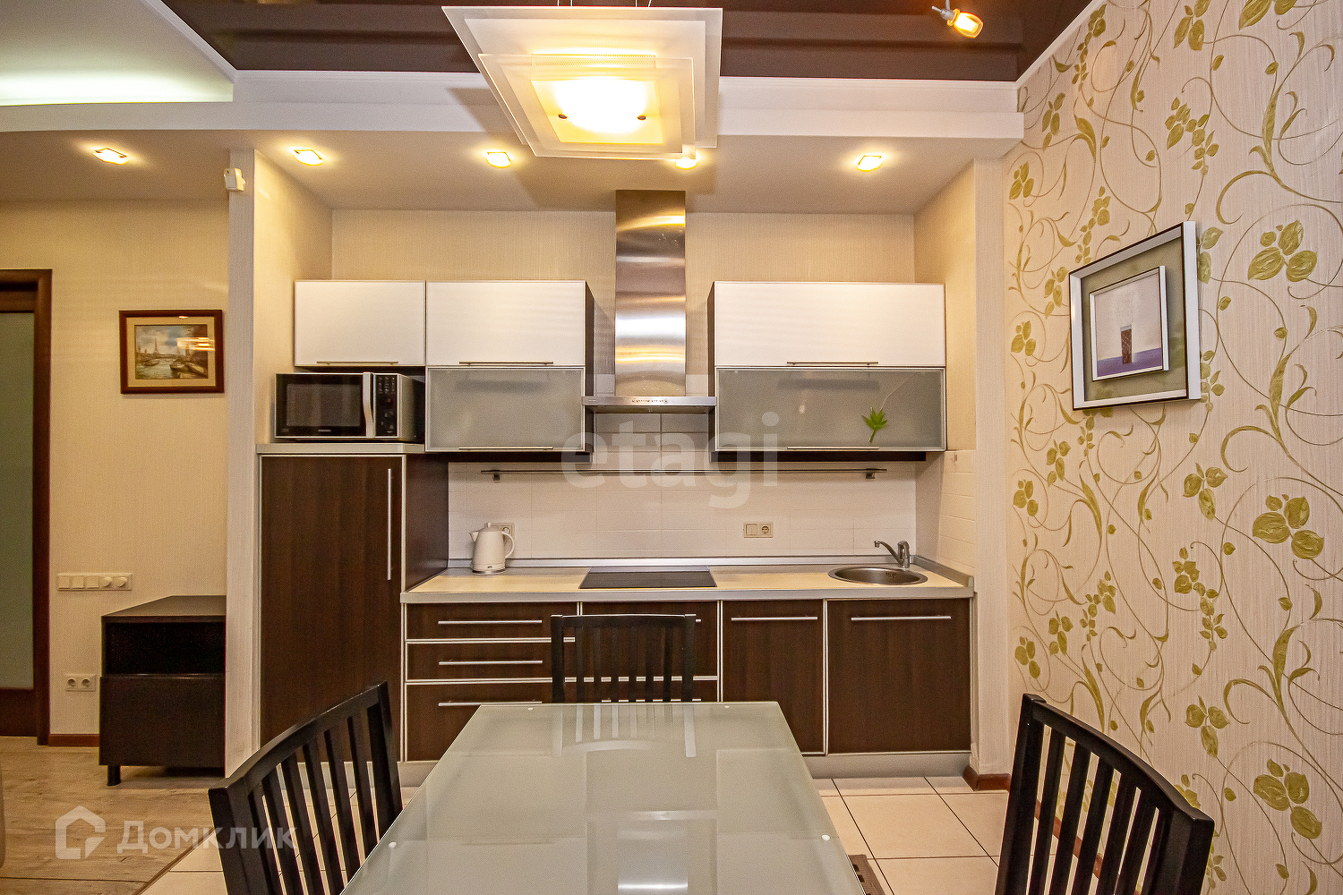 Просторная кухня-гостинная позволяет семье больше времени проводить вместе. Высокие потолки всо всей квартире формируют большое и светлое пространство.
