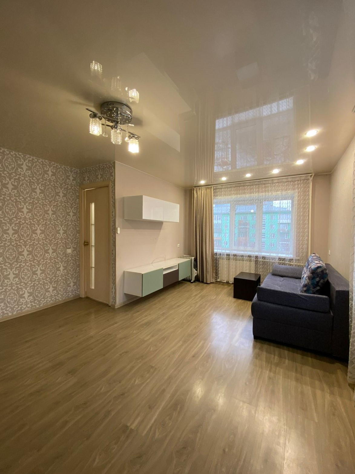 Квартира просторная и уютная, из мебели остается: модуль под телевизор, встроенный шкаф, кухонный гарнитур (кроме холодильника), обеденный стол.