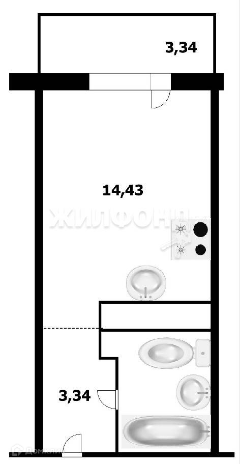 Квартира студия, 21.6 м2, этаж 13 / 25, на продажу в Новосибирске, Беловежская улица, 4/1