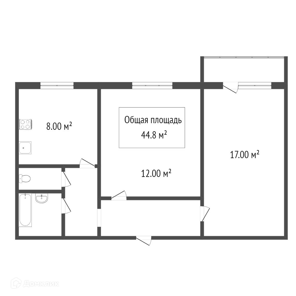 Общая площадь 44 м2