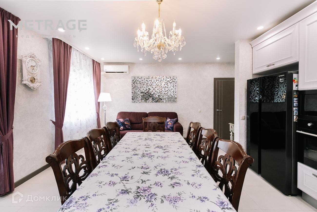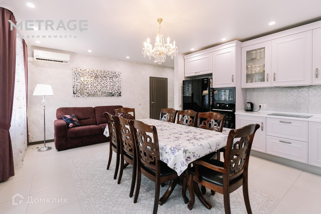 Встроенная техника: микроволновка, духовой шкаф Kupersberg, плита индукционная, большая посудомойка Kupersberg, большой двустворчатый холодильник SAMSUNG. Обеденная зона: стол, стулья всё из массива натурального дерева.