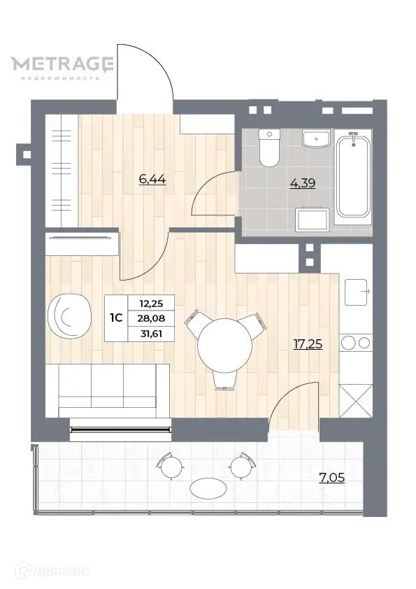 Общая площадь 31.6 м2
