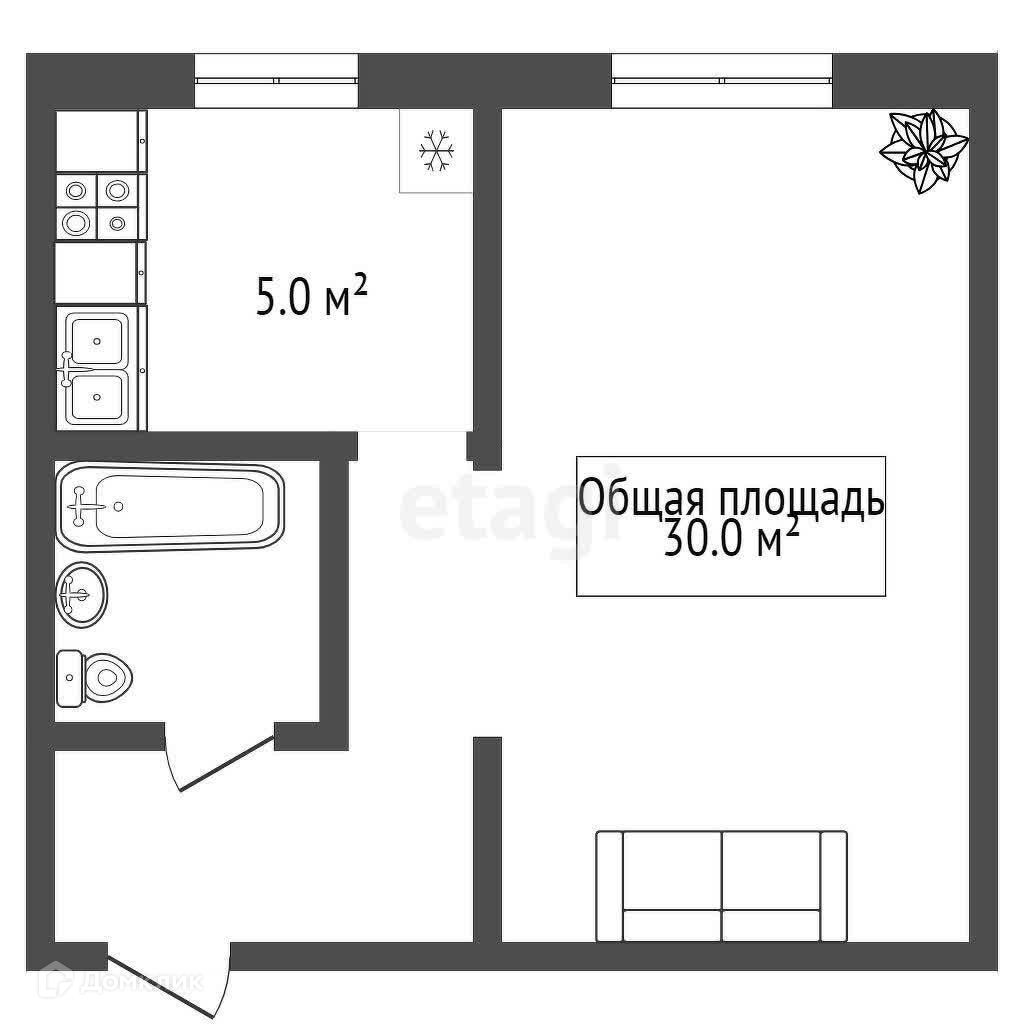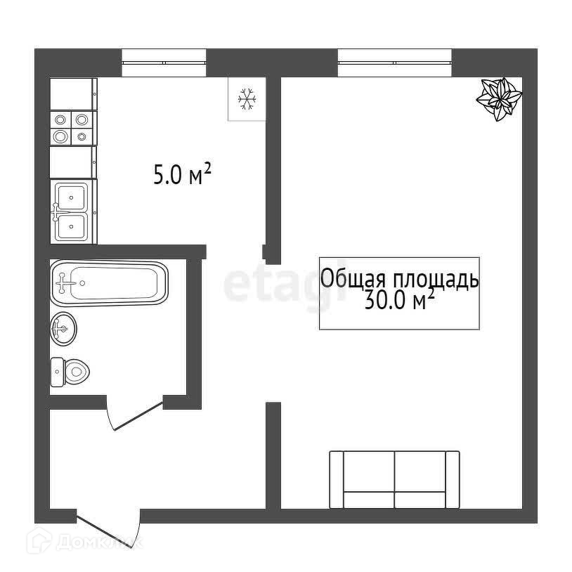 Общая площадь 30 м2