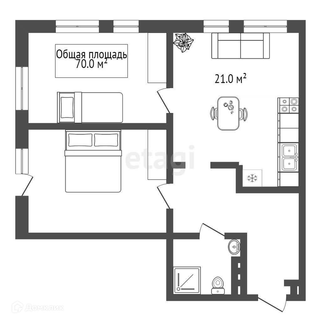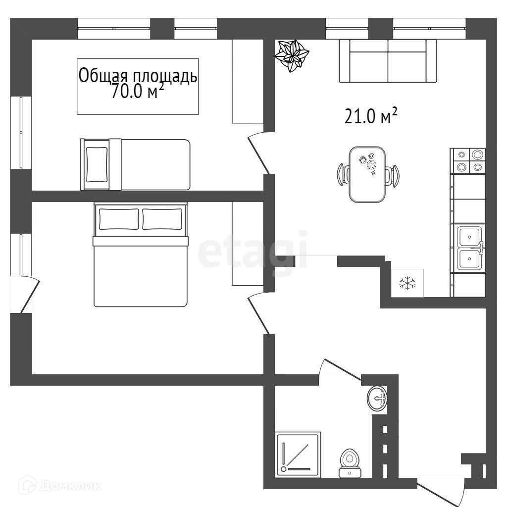 Общая площадь 70 м2