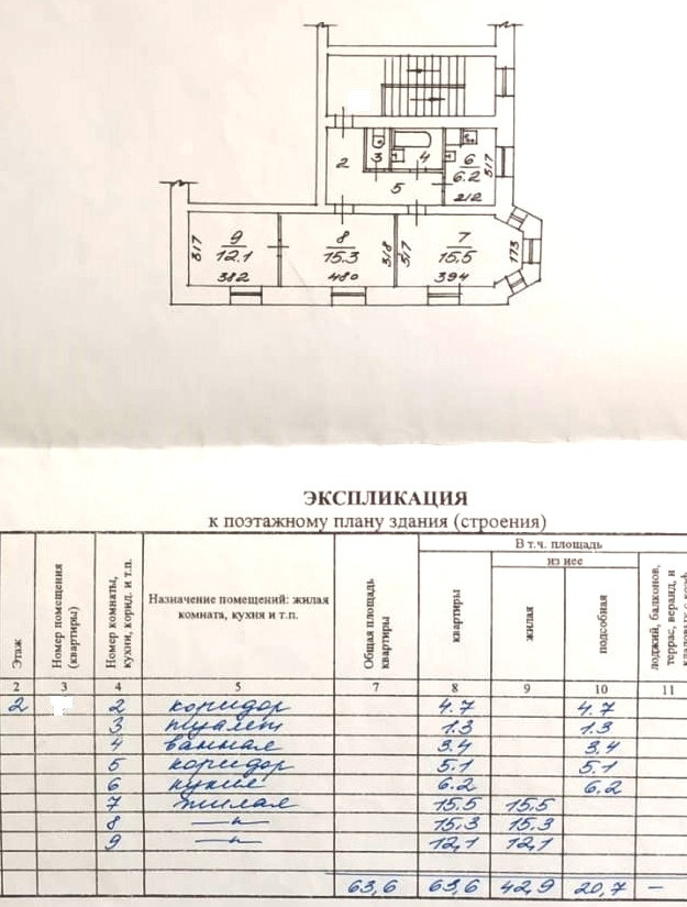 Общая площадь 63.6 м2