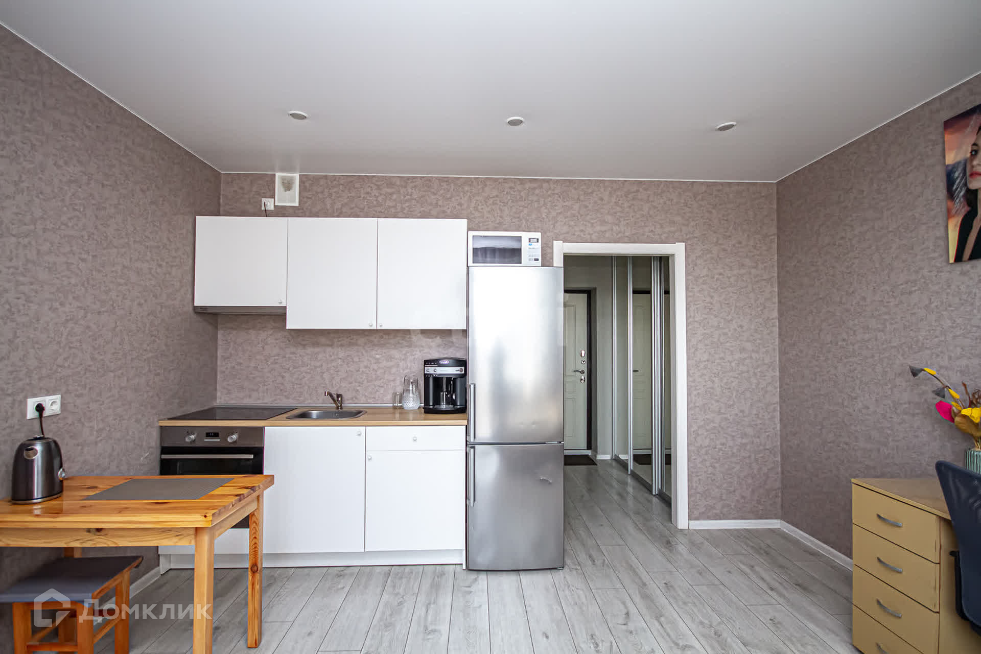 В квартире выполнен свежий дизайнерский ремонт из качественных материалов. Квартира чистая, светлая, уютная. Новому собственнику остается вся крупная бытовая техника и мебель, а именно: кухонный гарнитур, вытяжка, духовой шкаф, электроплита, обеденный стол, компьютерный стол, кондиционер, односпальная кровать с матрасом, раковина-шкаф, стиральная машинка, встроенный шкаф-купе.