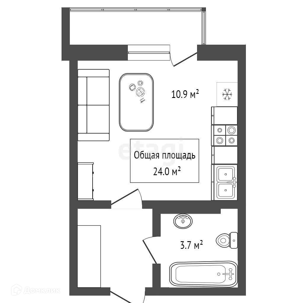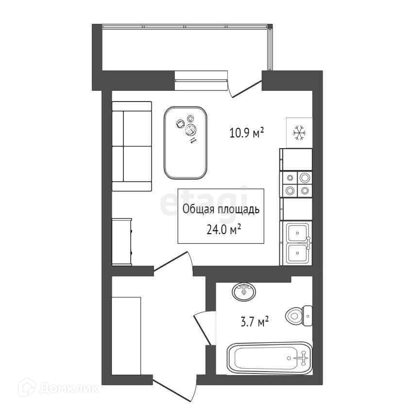 Общая площадь 24 м2