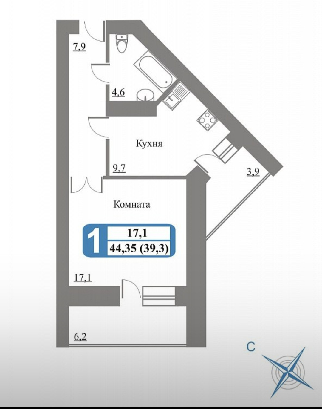 Количество комнат 1