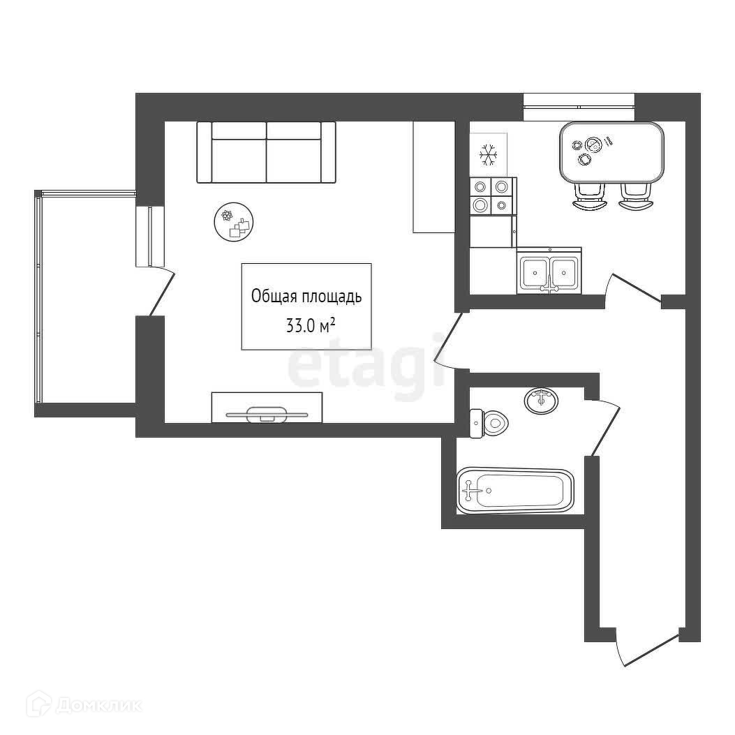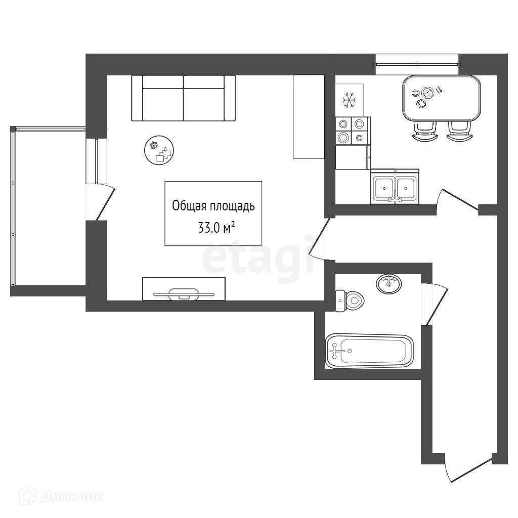 Общая площадь 33 м2
