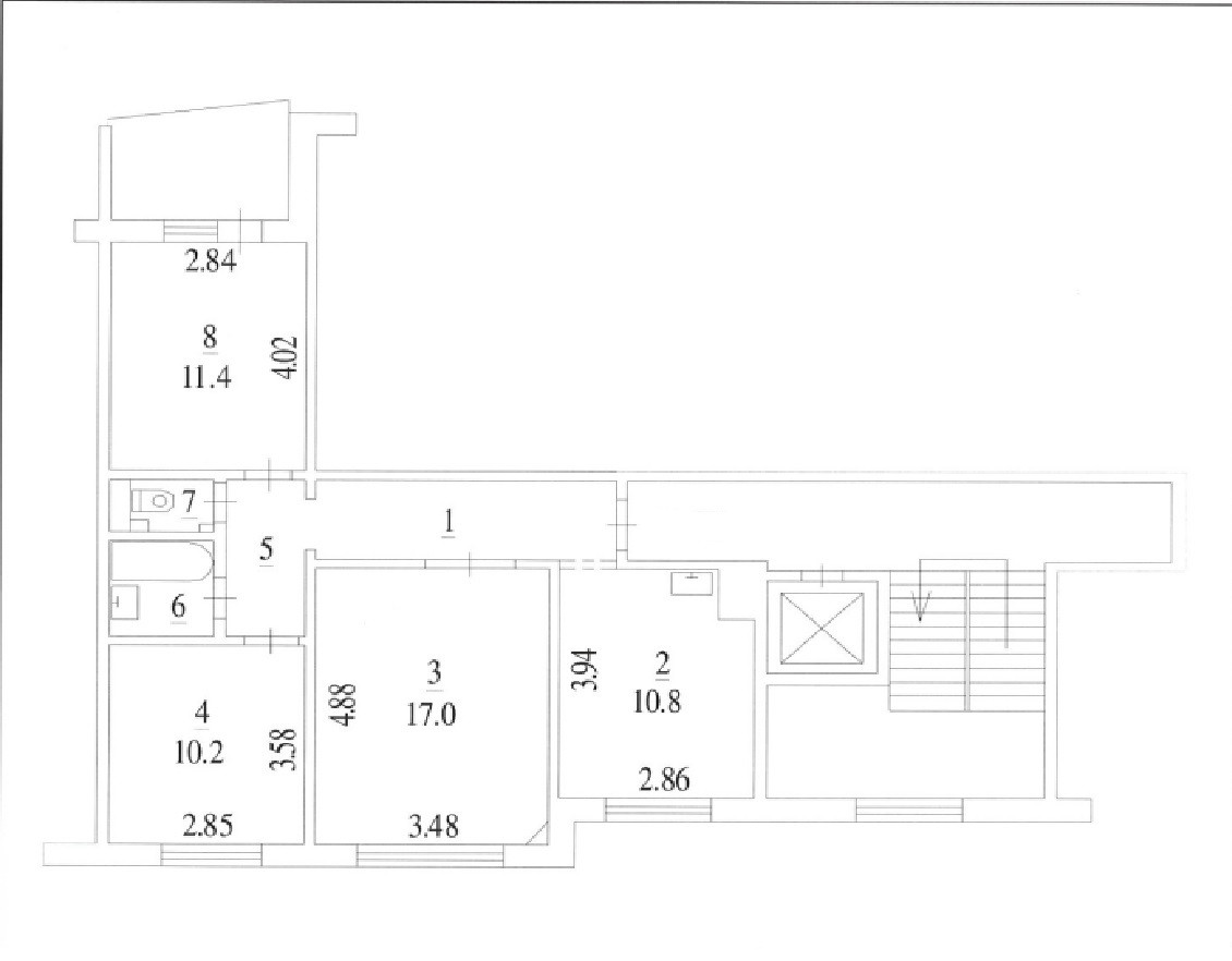 Жилая площадь 38.6 м2