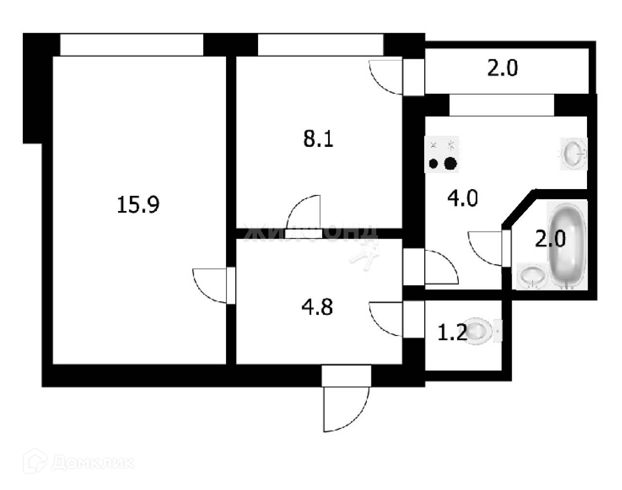 2-комнатная квартира, 37.3 м2, этаж 3 / 5, на продажу в Новосибирске, проспект Димитрова, 6