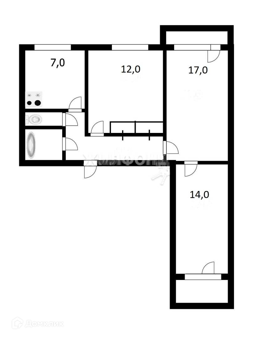 3-комнатная квартира, 60 м2, этаж 10 / 10, на продажу в Новосибирске, Воинская улица, 110