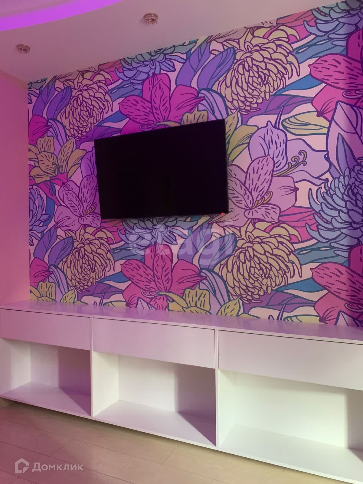 Натяжные потолки, подсветка с пультом, теплый пол.