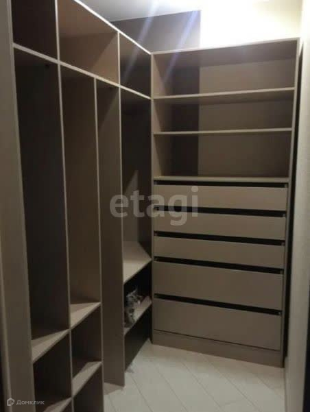 В коридоре большой встроенный шкаф с полками и ящиками. В одной из детских и в спальне есть встроенный шкаф.