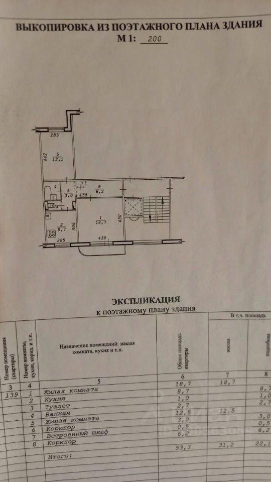 Общая площадь 53.3 м2