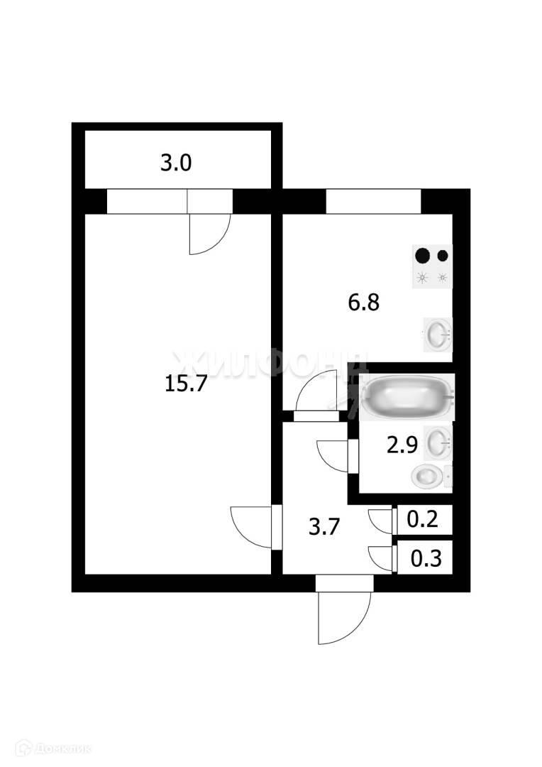 Общая площадь 29.6 м2