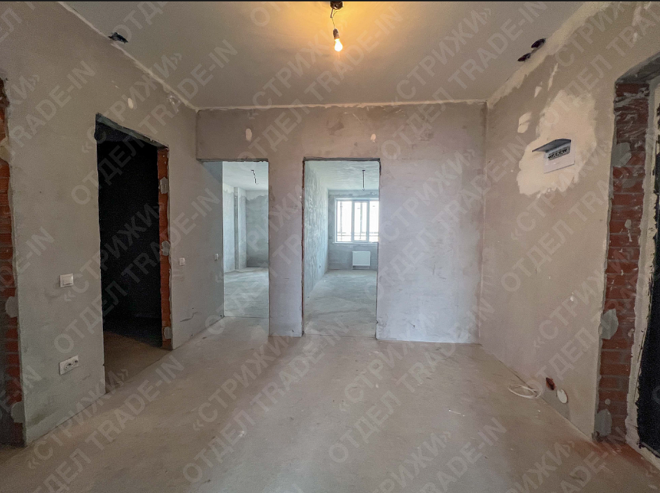 Квартира под самоотделку (выполнена стяжка пола, электроразводка + установлены выключатели и розетки, водоснабжение подведено до точек подключения, стены оштукатурены).