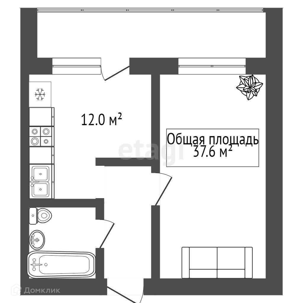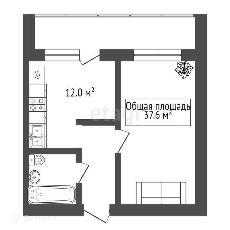 Общая площадь 37.6 м2