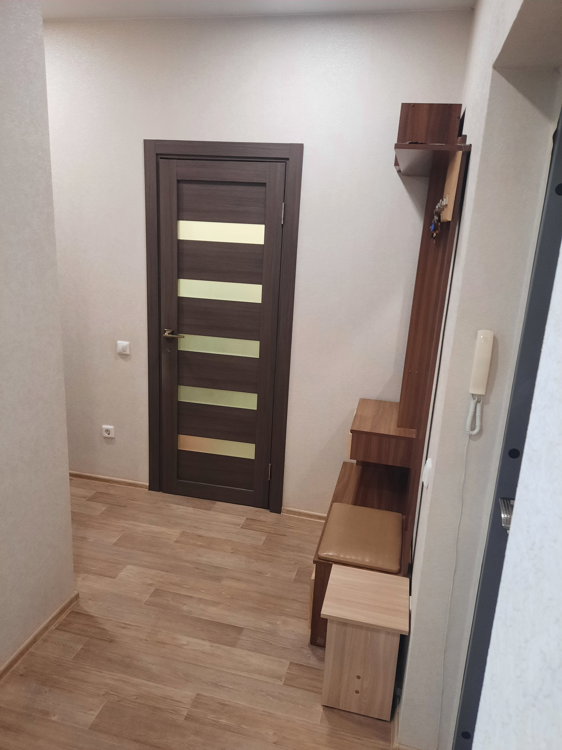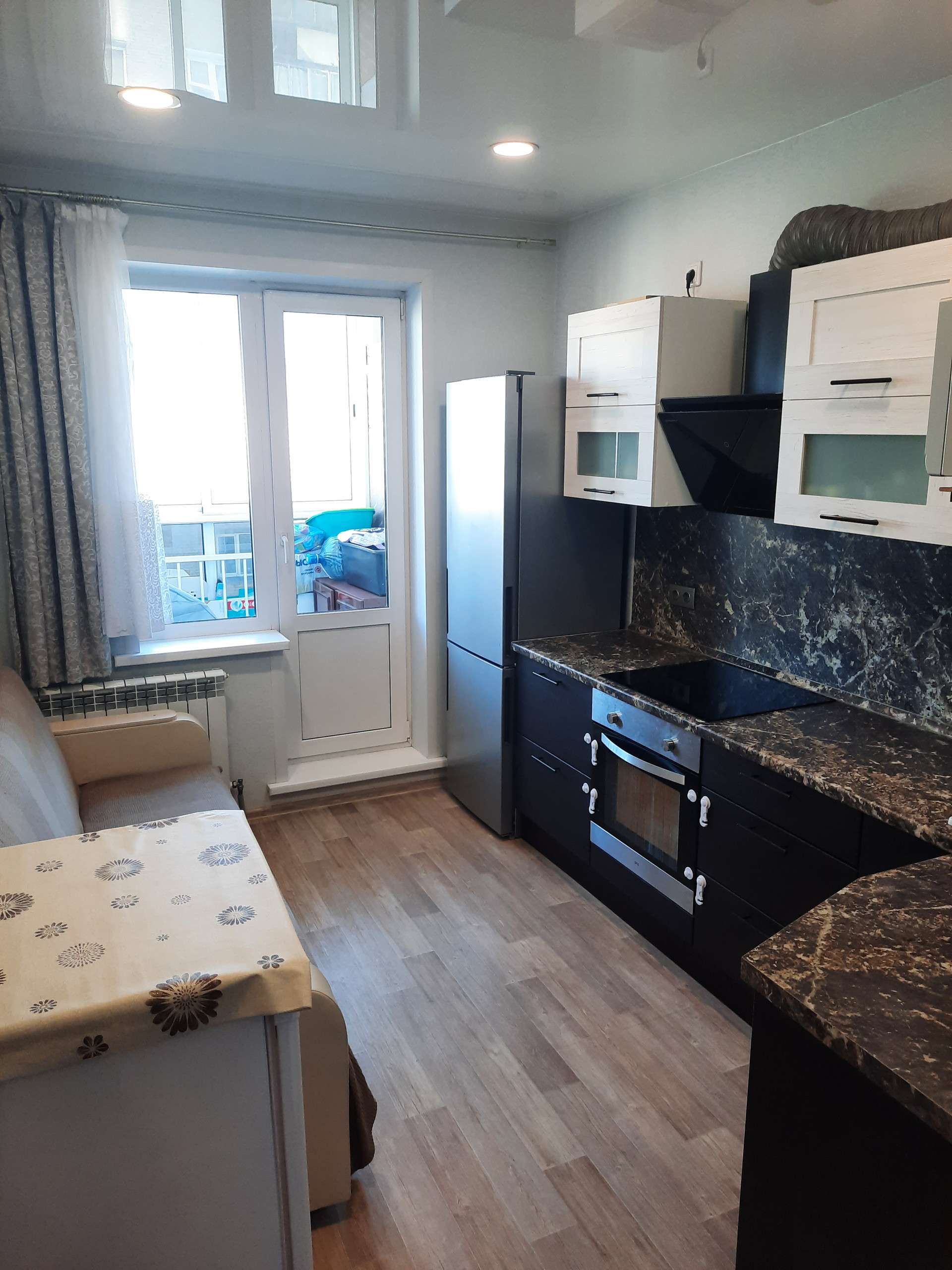 Квартира в хорошем состоянии, не требующем срочного ремонта; имеет ряд преимуществ: светлая и теплая, с просторной кухней, застекленной вместительной лоджией, частично меблирована (встроенный шкаф-купе с зеркальными дверями в коридоре, встроенный шкаф в комнате, кухонный гарнитур вместе с вытяжкой, духовым шкафом, варочной панелью).
