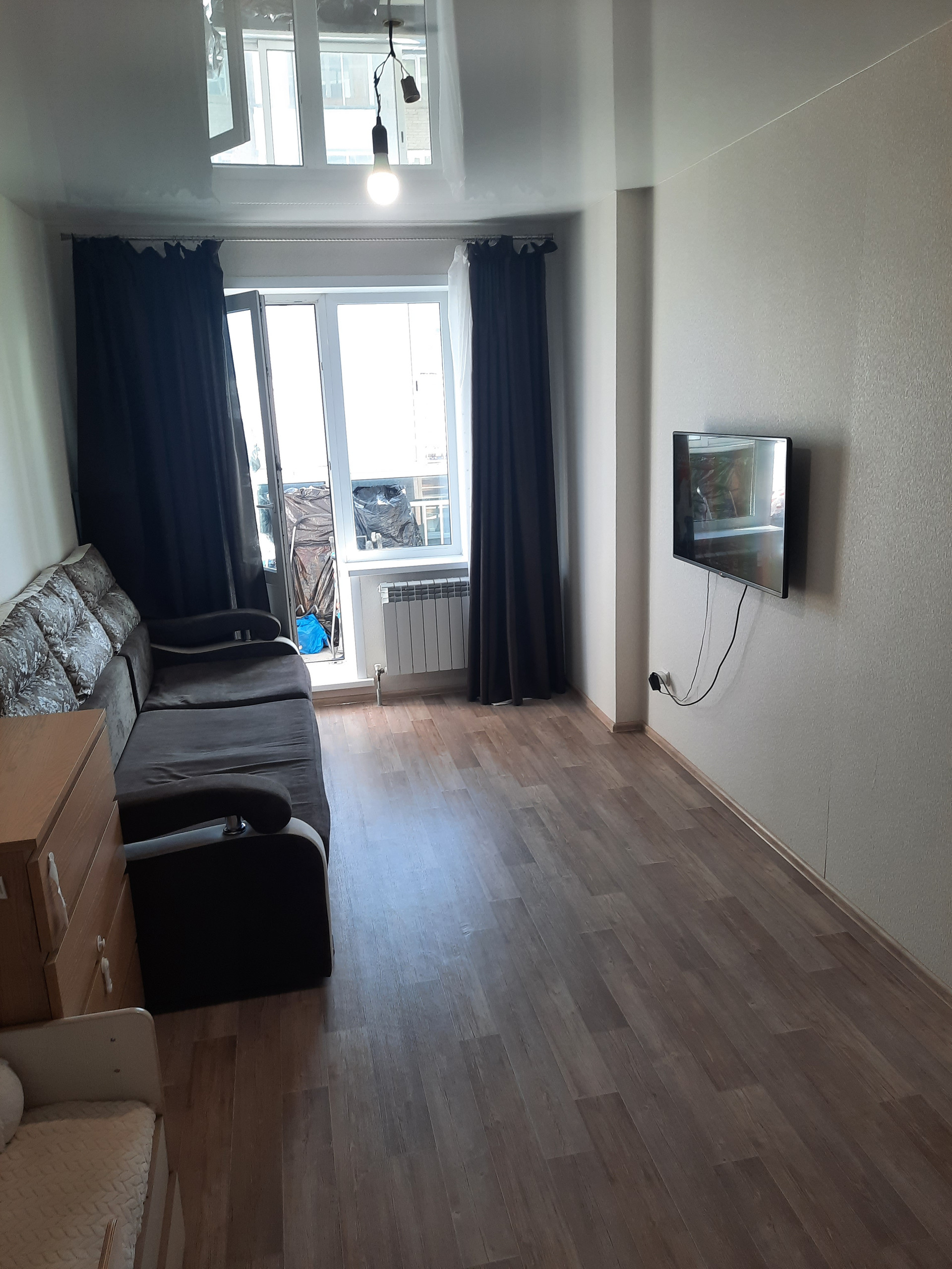 Во всей квартире натяжные потолки.