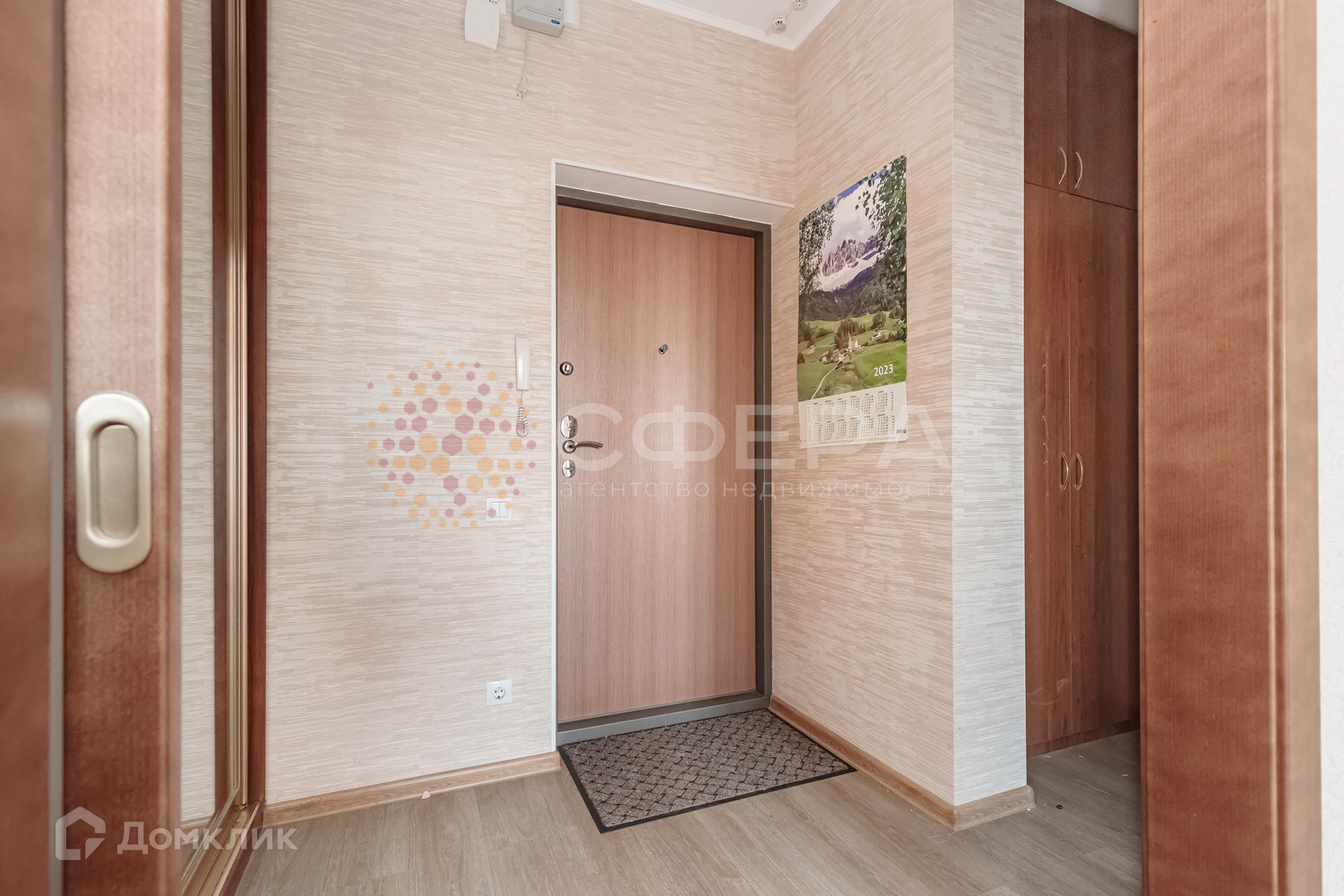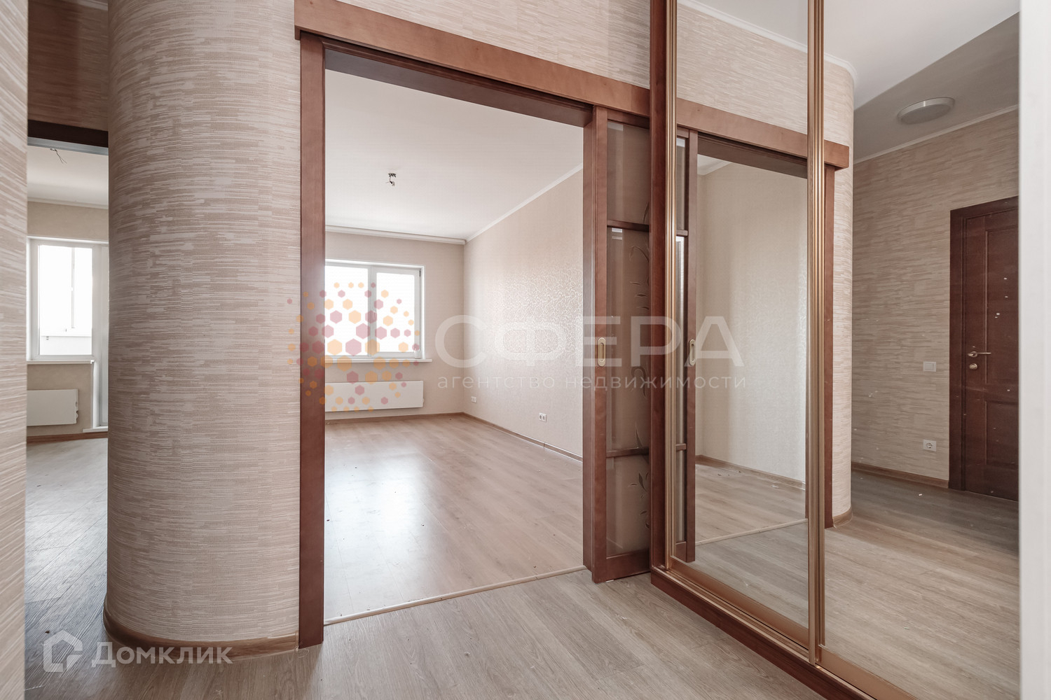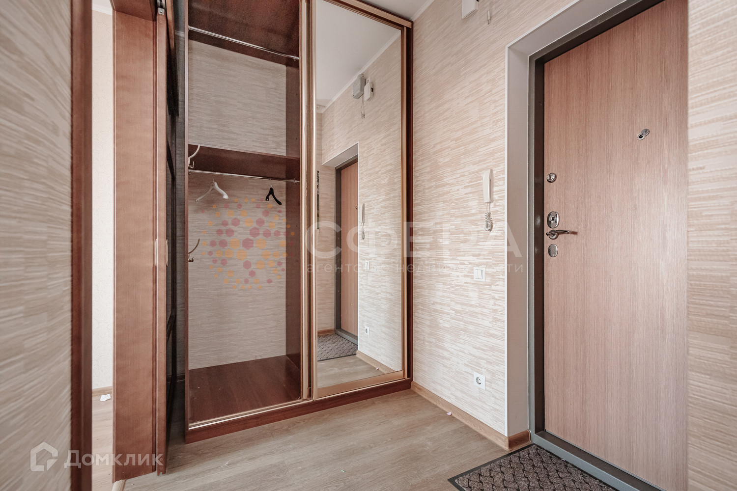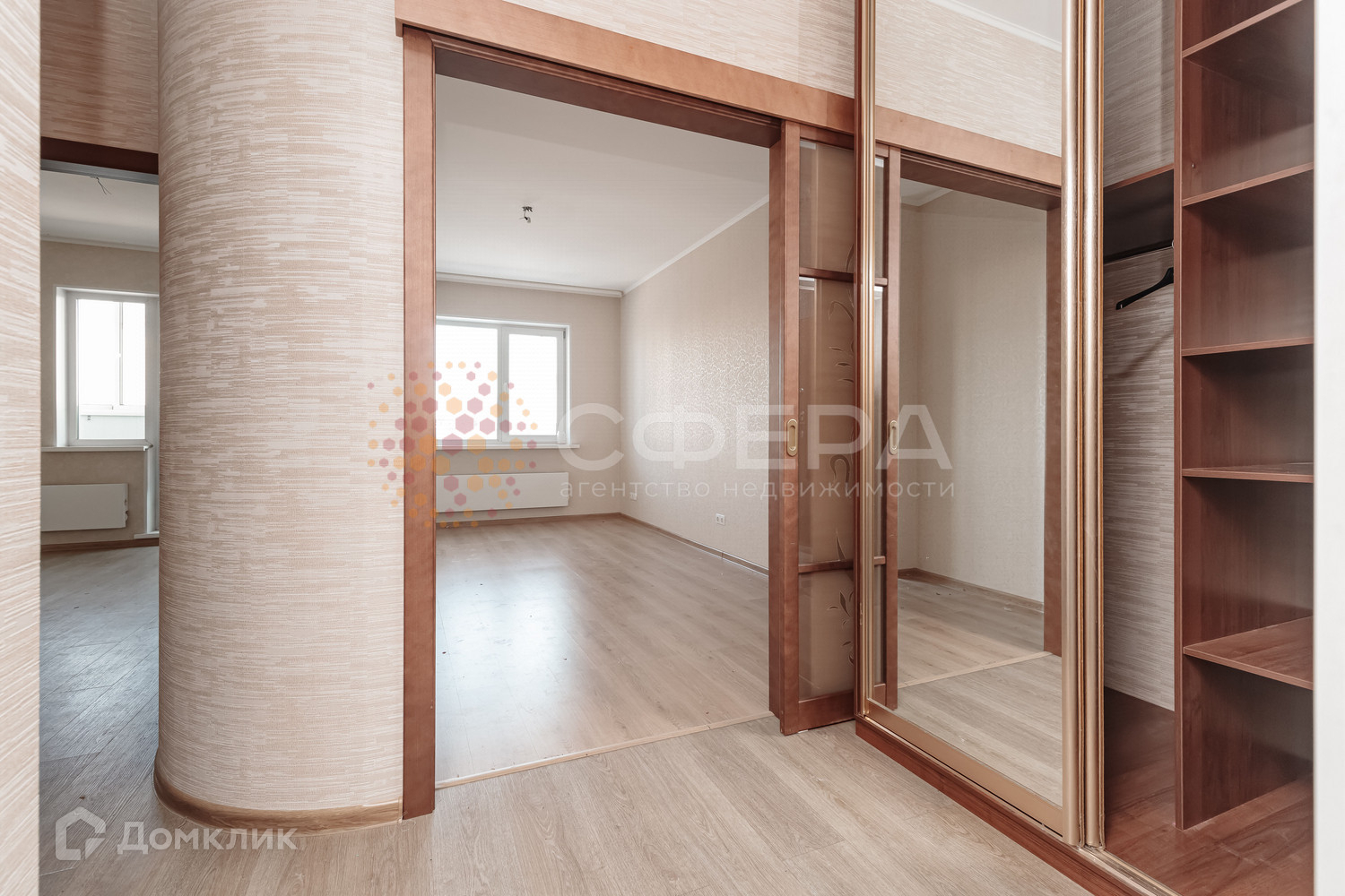 Встроенный шкаф-купе, есть система хранения.