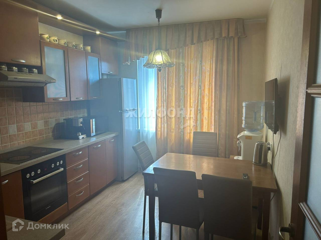 В квартире выполнен качественный ремонт, использовались только экологически чистые материалы. Все коммуникации исправны, установлены счетчики на воду и электричество. На полу ламинат. Встроенная кухня оборудована всей необходимой бытовой техникой.