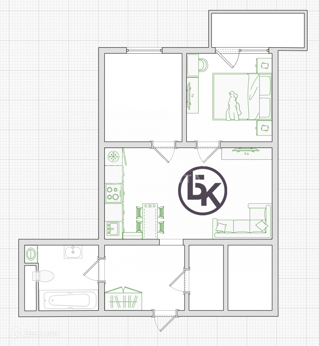 Арт. 67132148 Трехкомнатная студия с ремонтом, мебелью и бытовой техникой