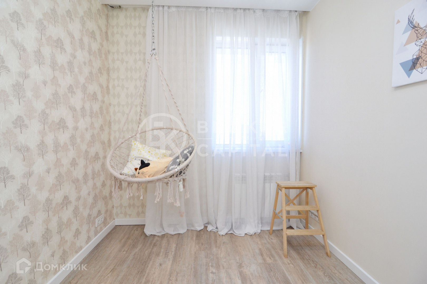 В квартире остается: кухонный гарнитур, холодильник, варочная поверхность, вытяжка, встроенный духовой шкаф, встроенная микроволновая печь, посудомоечная машина, холодильник, стиральная машина, диван, спальный гарнитур, прикроватные тумбы, кровать, стол в спальне, оборудование гардеробной комнаты, все освещение и шторы, качеля в детской, детский столик, телевизор в гостинной, шкаф в прихожей, кондиционер.