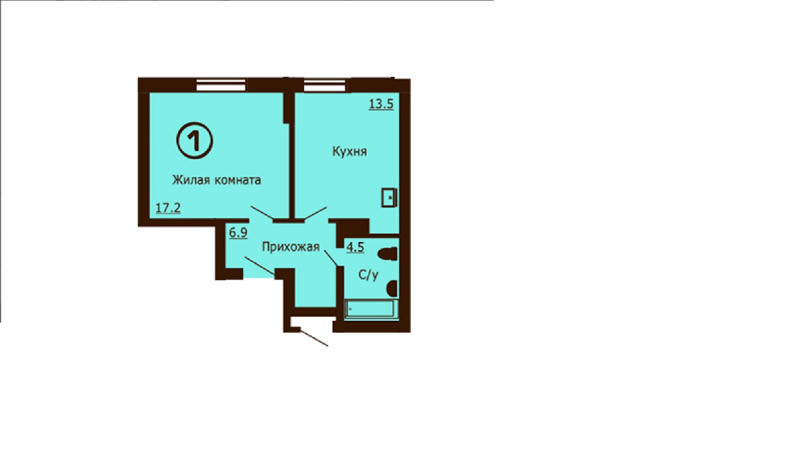 Общая площадь 43 м2