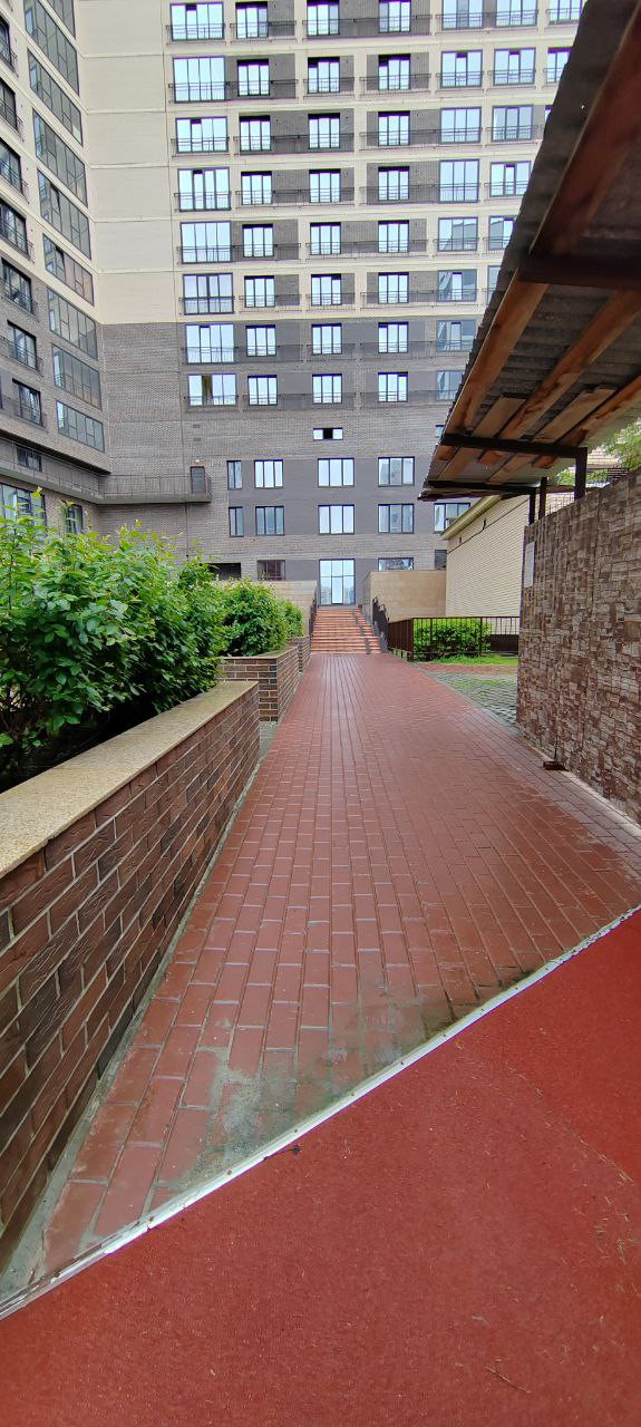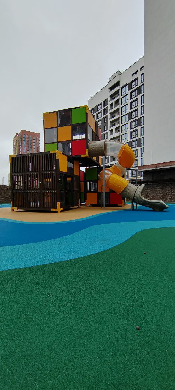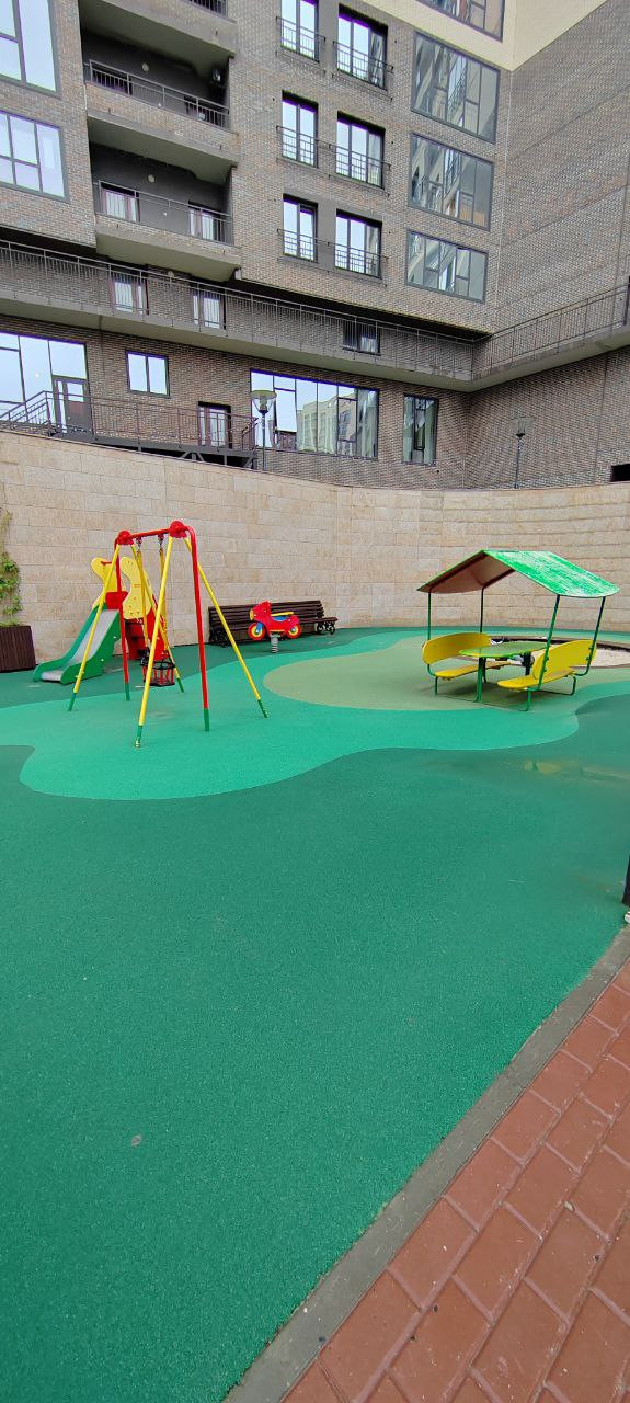 Территория комплекса полностью огорожена, имеются современные детские и спортивные площадки.