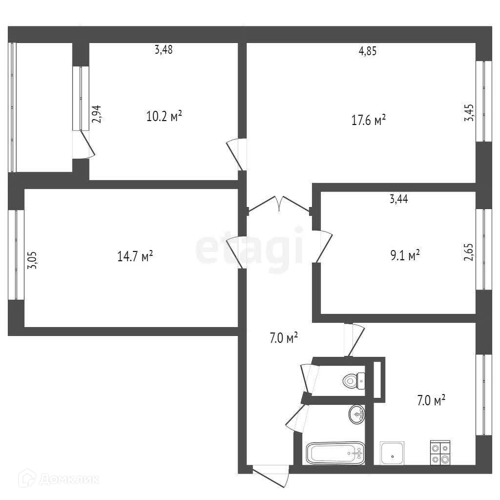Комнаты: 4 (изолированные)