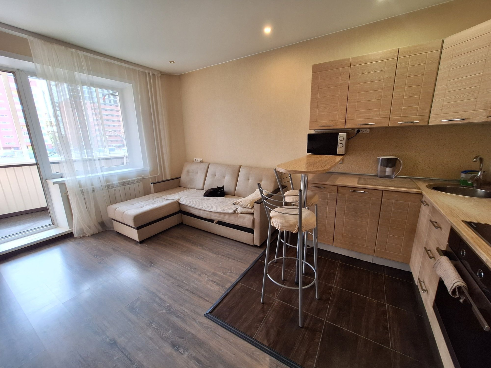 В продаже однокомнатная квартира с большой кухонной зоной 16м2 с выходом на застекленную лоджию . Площадь квартиры указана без учёта лоджии + 5м2.  Замечательная планировка распашонка на две стороны . Комфортный второй этаж . Сделан качественный ремонт в квартире.  Оставляем : шкаф купе , кухонный гарнитур с вытяжкой , варочная поверхность,  духовой шкаф . Во дворе с парковкой нет проблем,  так же есть подземный паркинг . По документам: один собственник,  без обременений и занижения.  В шаговой доступности: магазины , школа,  дет.сад , парк. Любая форма расчета подходит с ипотекой поможем. Звоните !