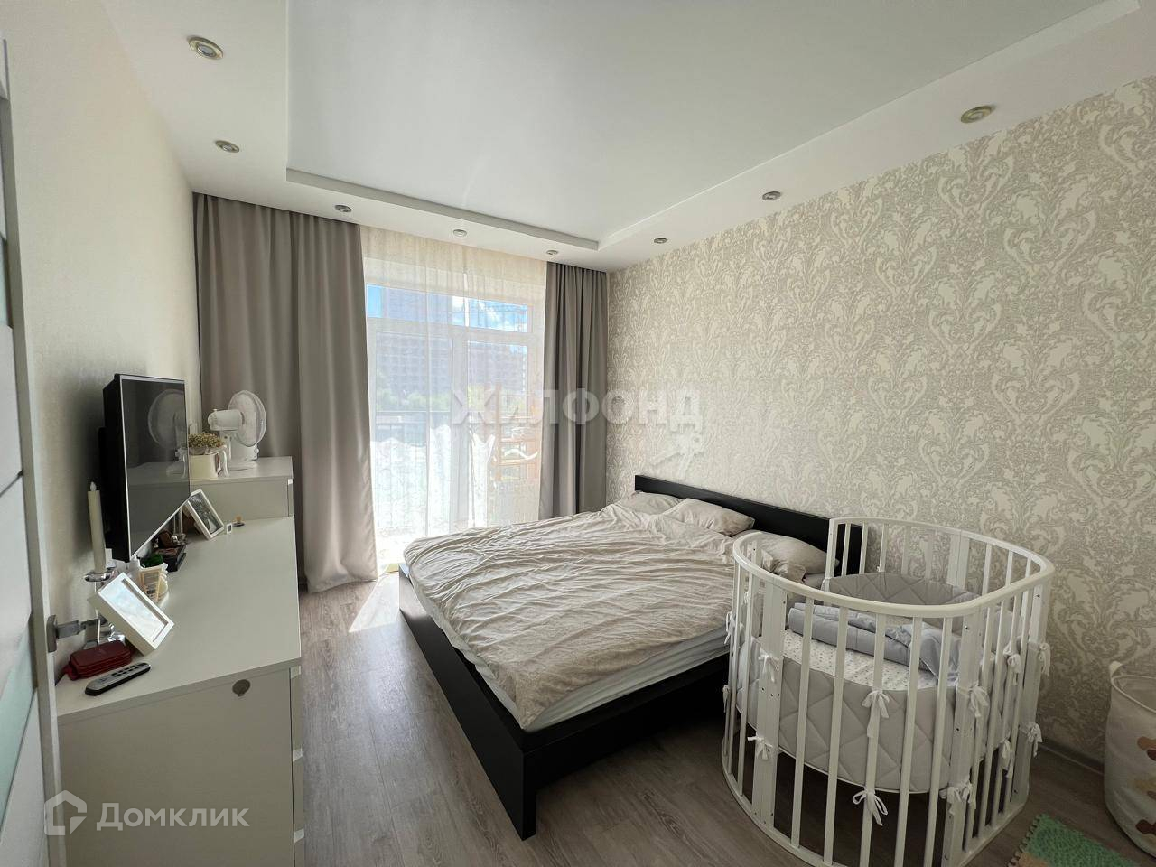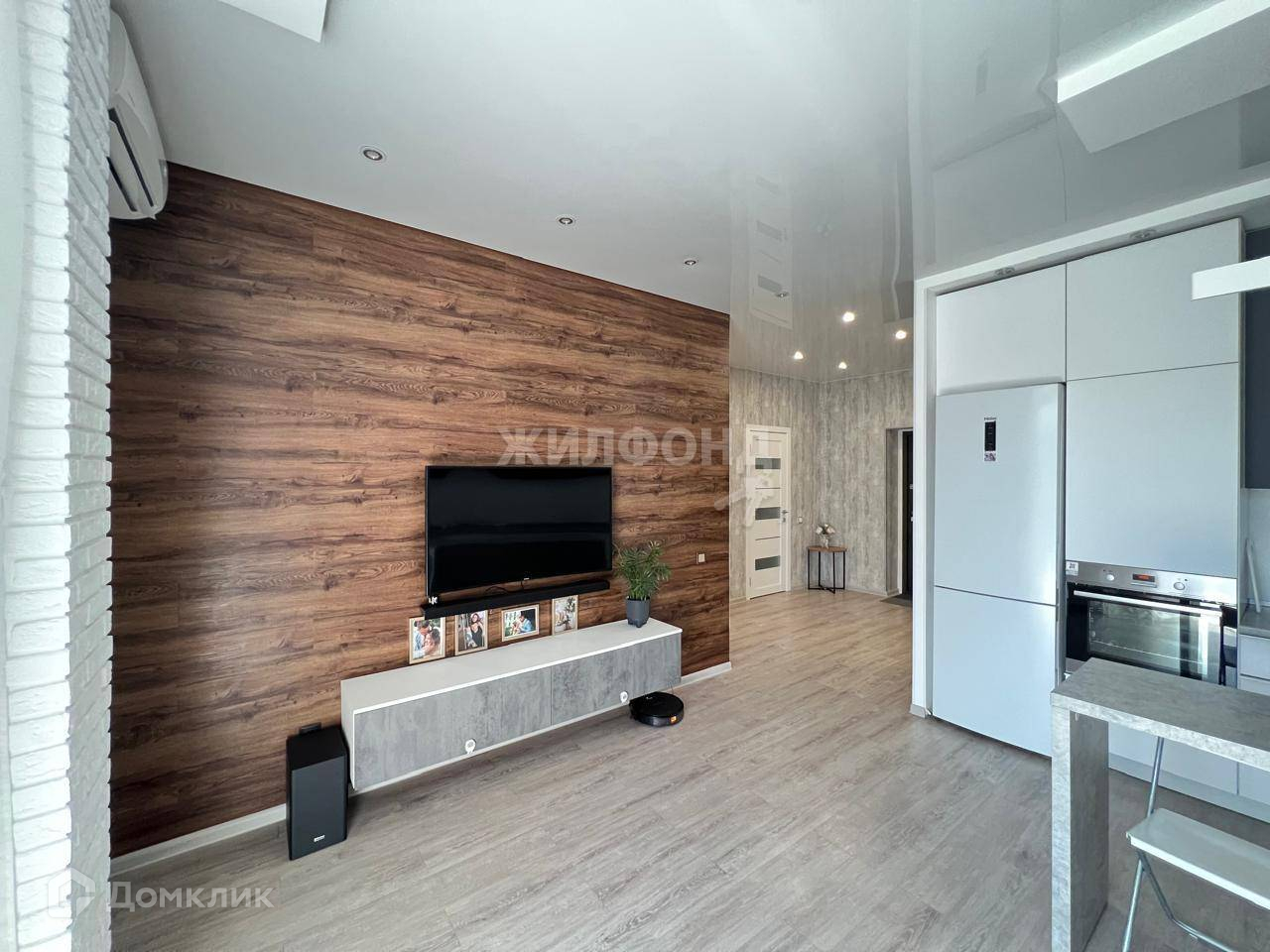 В квартире спальня с французским балконом, гостиная-столовая с современной кухней и встроенной техникой, а также из гостиной выход на лоджию. В просторном коридоре есть большая и функциональня гардеробная комната. Квартира в отличном состоянии, сделан качественный ремонт, на полу ПВХ-плитка, установлены современные двери, кондиционер.