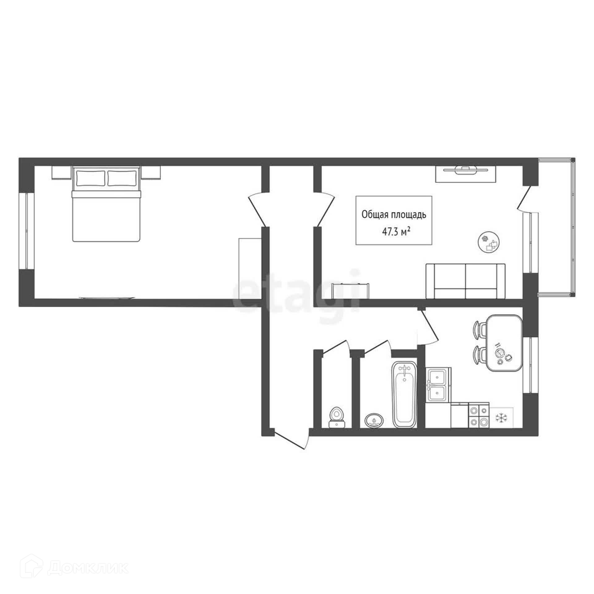 Общая площадь 47.3 м2