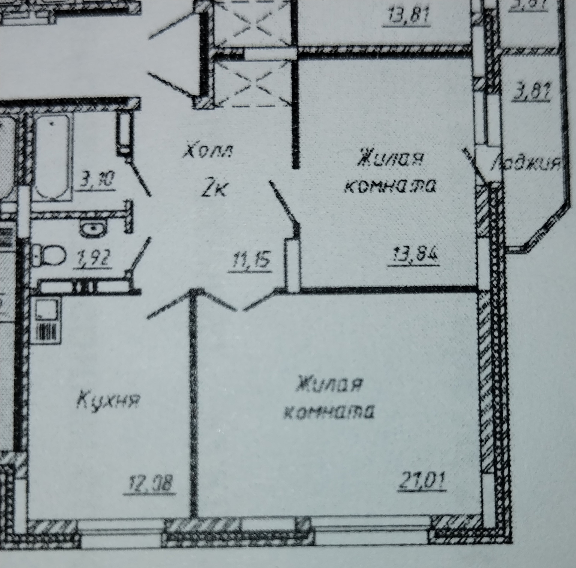 Общая площадь 62.8 м2