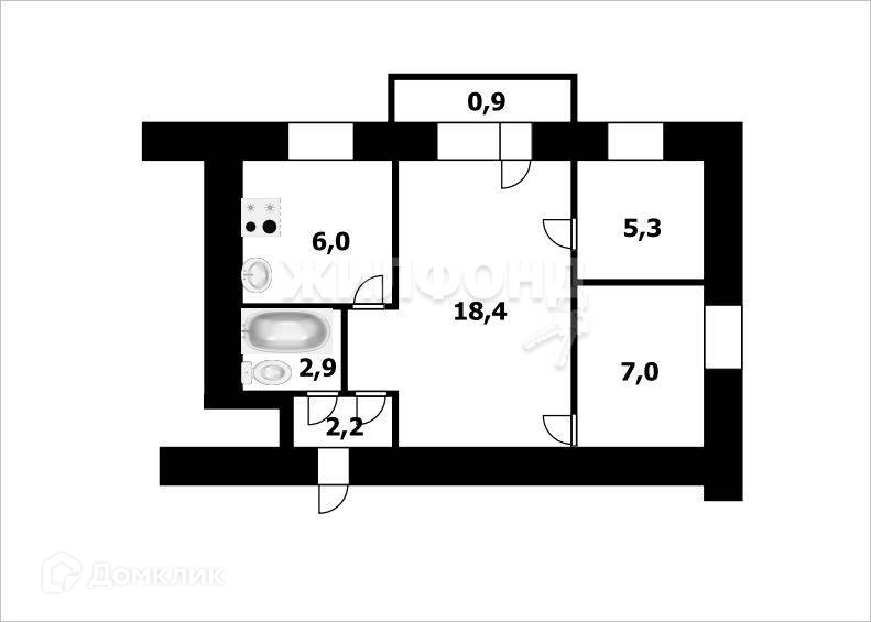 3-комнатная квартира, 42 м2, этаж 3 / 5, на продажу в Новосибирске, улица Богдана Хмельницкого, 8/1