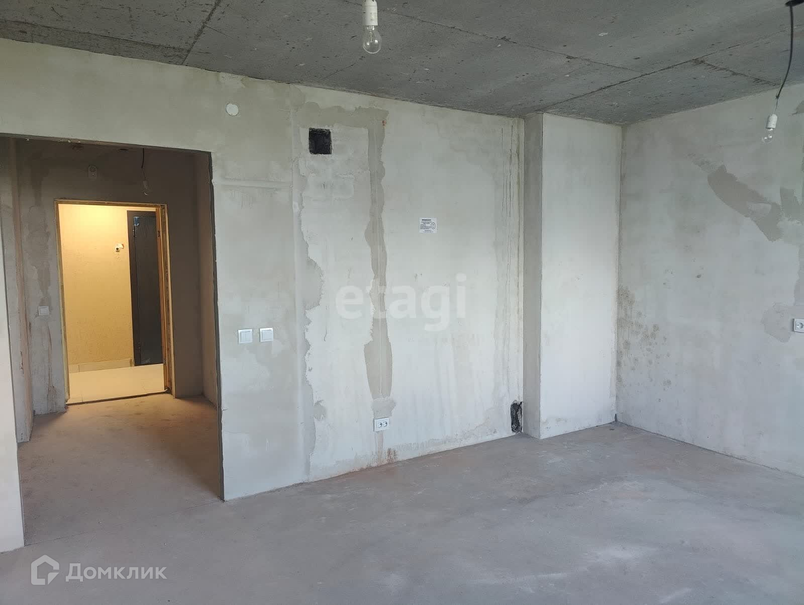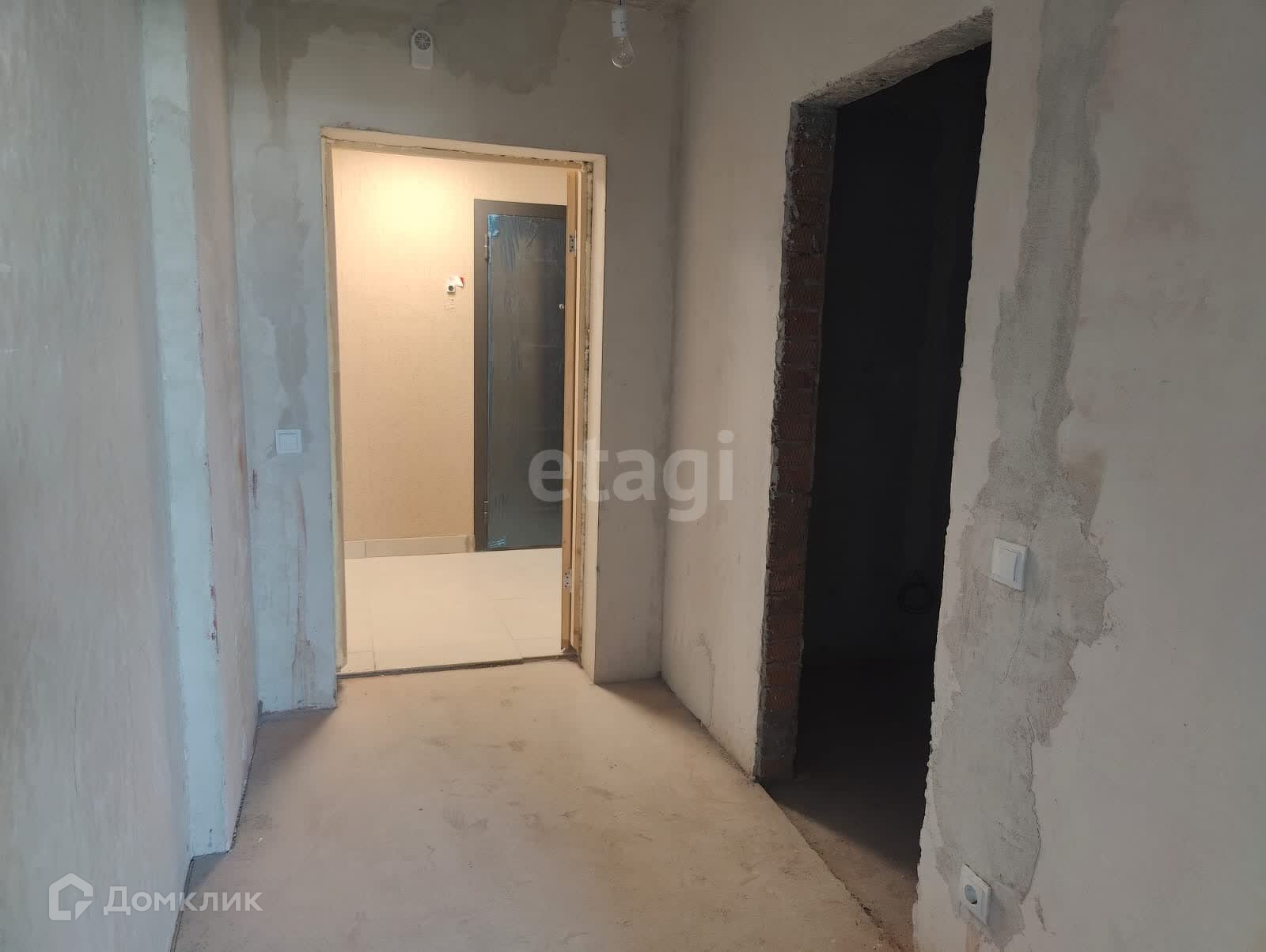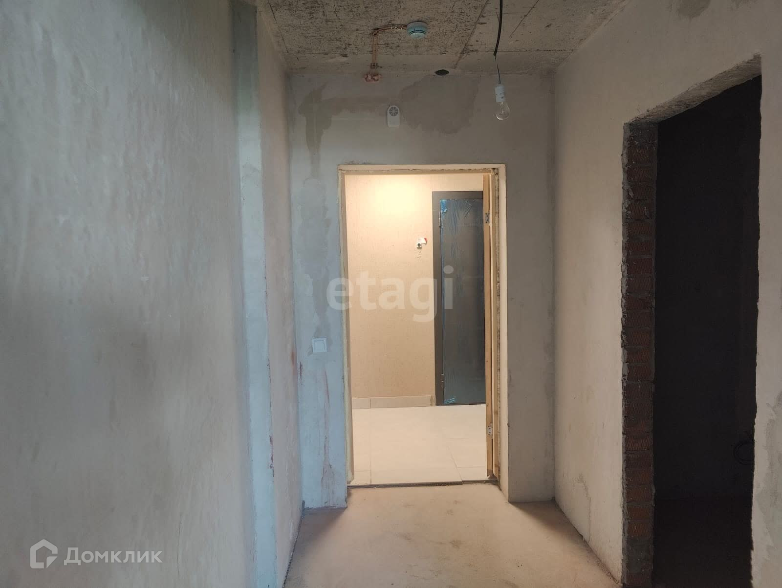 Пол - ровная стяжка, хороший коридор, дверь стоит деревянная временная для ремонта.