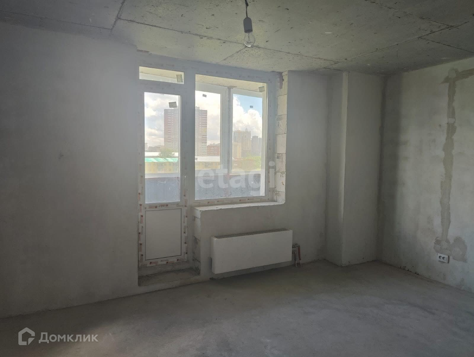 Комната квадратной формы, не вытянутая, а из окон прекрасный вид на город.