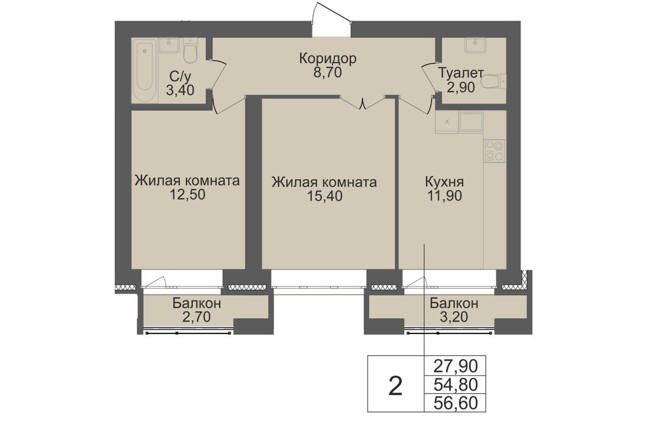 Квартира обладает жилой площадью 27.9 квадратных метров и просторной кухней площадью 15 квадратных метров, что позволяет комфортно разместиться всей семье. В квартире выполнен качественный евроремонт, благодаря которому она выглядит свежо и современно. Также имеется два балкона, где можно наслаждаться видами города или просто отдохнуть после трудового дня.