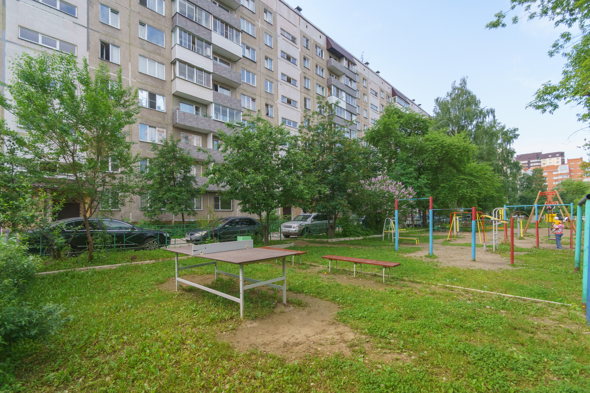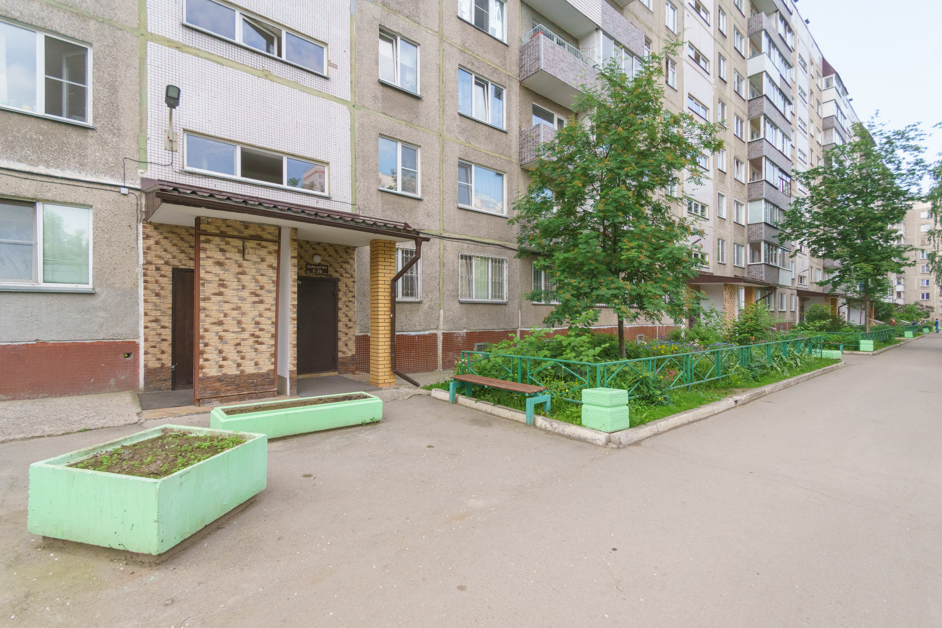 дворовая территория ухожена и полностью огорожена.