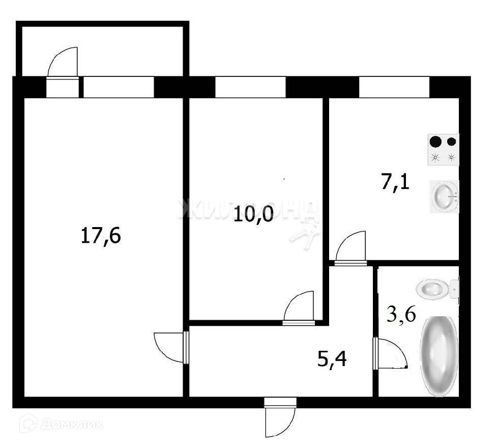 2-комнатная квартира, 44.9 м2, этаж 6 / 9, на продажу в Новосибирске, улица Даргомыжского, 3