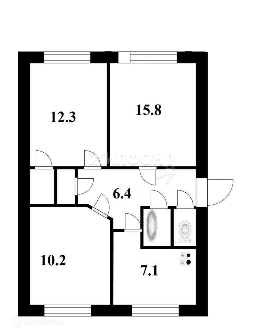 Жилая площадь 38.3 м2