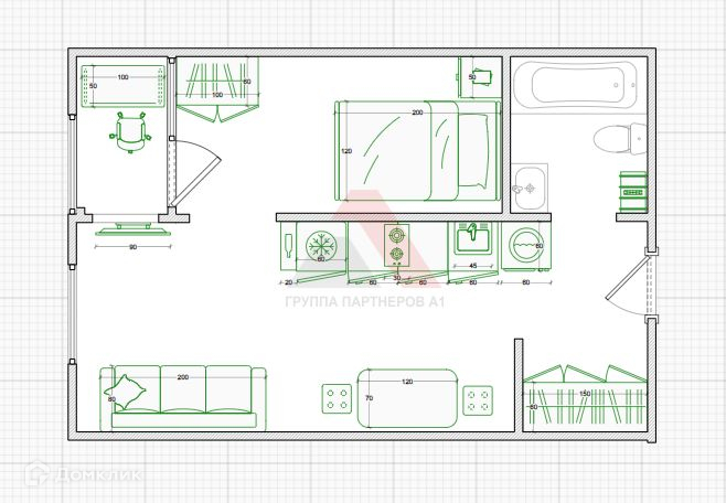 Общая площадь 28.1 м2